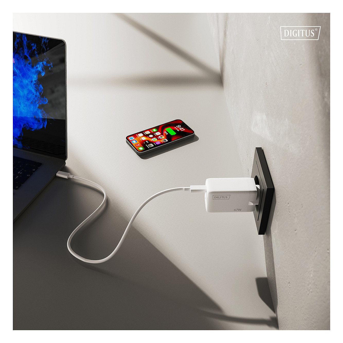 DIGITUS USB GaN Charger 67W, 2x USB-C, 1x USB-A