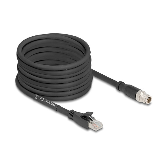Delock M12 Kabel X-kodiert 8 Pin Stecker zu RJ45 Stecker Cat.5e S/FTP flexibel 10 m schwarz