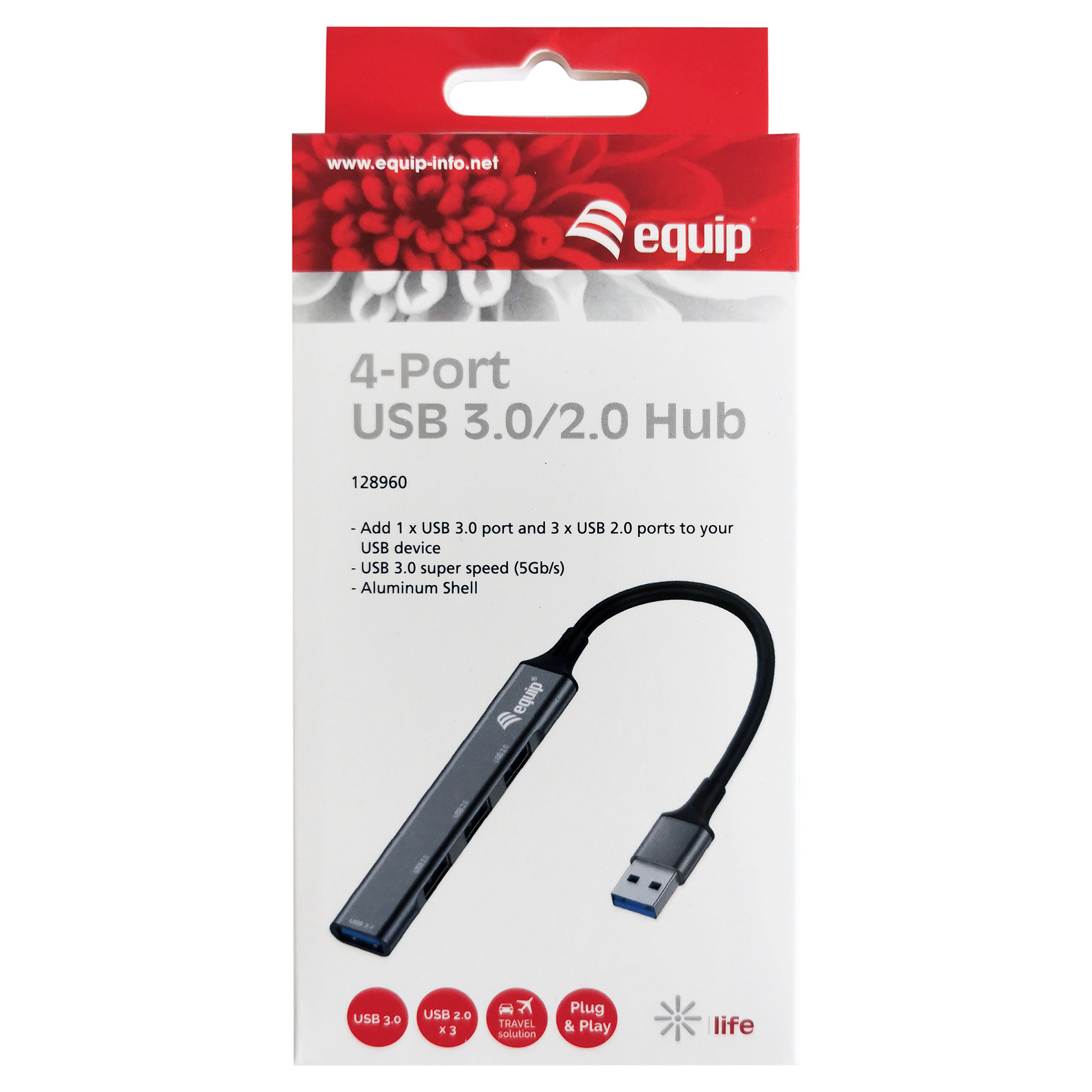 Equip USB-Hub 4-Port 3.0 ->1x3.0 3x2.0 5Gbps o.Netzteil gr