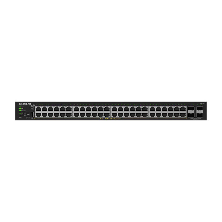 NETGEAR GS348TPv2 - Switch - 2+/L3 Lite - Smart - 48 x 10/100/1000 (PoE+) + 4 x SFP - Desktop, an Rack montierbar - PoE+ (380 W)