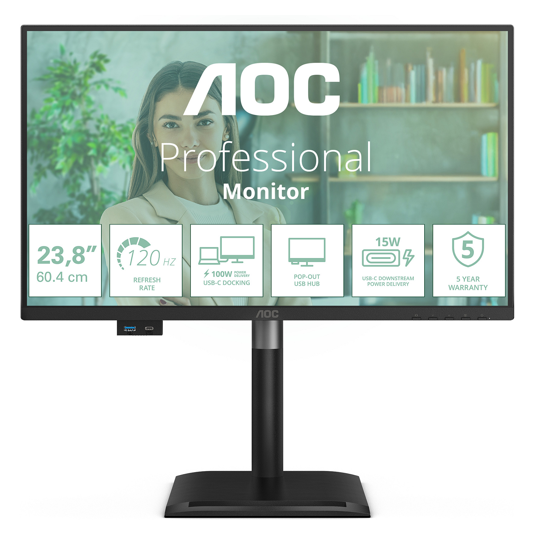 61cm/24" (1920x1080) AOC Pro-line 24P3CV 16:9 FHD IPS 4ms 75Hz HDMI DP USB-C Speaker Pivot Black